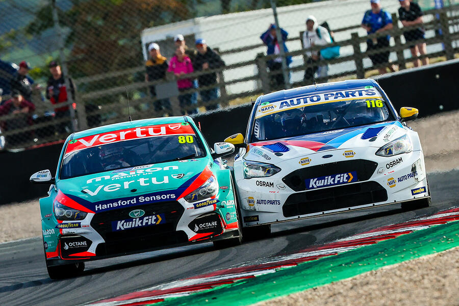 Ash Sutton in Alliance Racing’s Ford Focus ST did all he could to claim a record fifth title, but in reality he was always straining to keep Tom Ingram’s Excelr8 Hyundai i30 N Fastback within range. Ingram fully deserved a second crown to add to his first from 2022 and wrapped up the title with a round to spare via a convincing race-two victory at Brands Hatch.