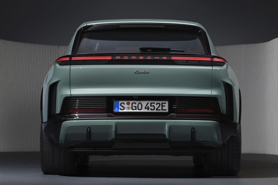 This version also gets a more pronounced rear diffuser with a body-coloured centre section. Both models feature a thin lightbar that spans the full width of the car, wrapping around the rear wings and displaying the Porsche wordmark in individually illuminated letters.
