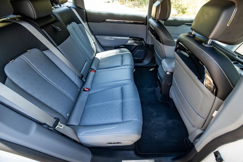 There’s also a good amount of headroom, and you will be able to fit three adults across the back if you need to. If you have kids, there are ISOFIX child seat anchors in the window seats and three top-tether points too, and you can electrically adjust the backrest recline angle as well.